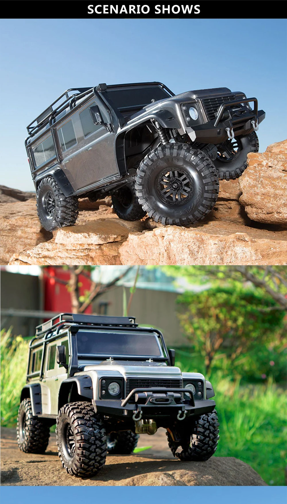 Traxxas TRX-4 Scale Defender Trail Crawler is an all-new Traxxas design that is loaded with innovation that instantly obsoletes the status quo with exciting new features, versatility, and capability. In other words, we built it the Traxxas way, rugged, powerful, and ready for fun!