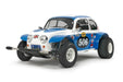 Originally released in 1979, the R/C Sand Scorcher was greatly received from fans around the world with its humorous form and superb mechanism. Keeping true to the basic layout of the original while incorporating many refined parts, this re-released version of the Sand Scorcher will remind you of the original. This model realistically reproduces the unique form of the buggy which was seen at the one-make race at the “Baja 1000” in California, USA. The body is molded in white polystyrene and can be painted with Tamiya plastic model paints. The rear-wheel drive 2WD chassis features realistic and aggressive driving performance that will no doubt excite you.