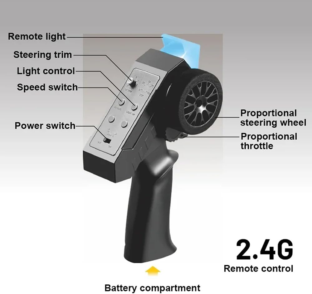 • Reliable Waterproof Servo: Don't let a little water stop your fun. The 25G waterproof servo ensures that your car performs reliably, even in wet conditions. Drive through puddles and wet terrain without a hitch.
