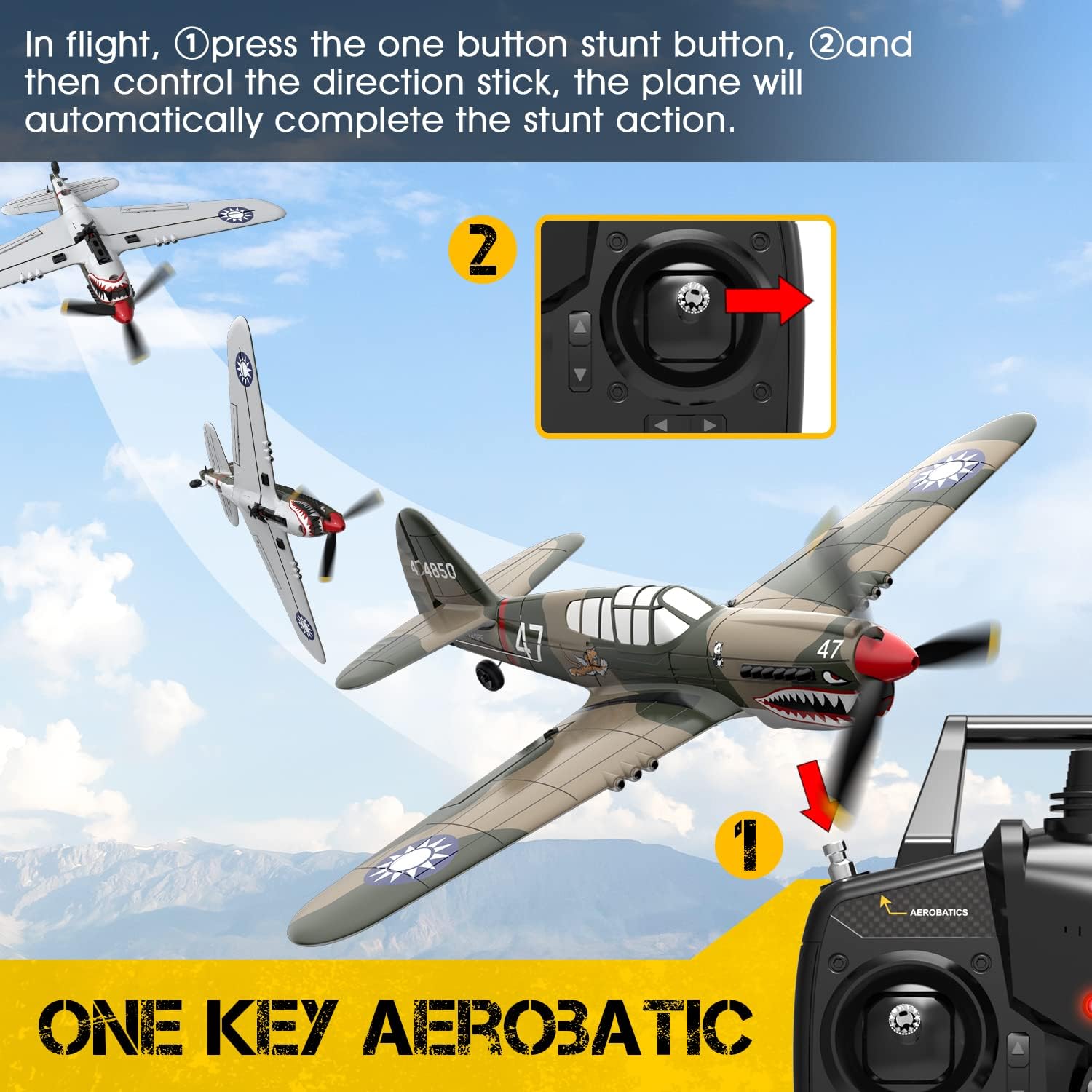 VOLANTEXRC RC P40 Warhawk 4CH Remote Control Airplane Ready to Fly  with Xpilot Stabilization System, One Key Aerobatic (761-13 RTF)