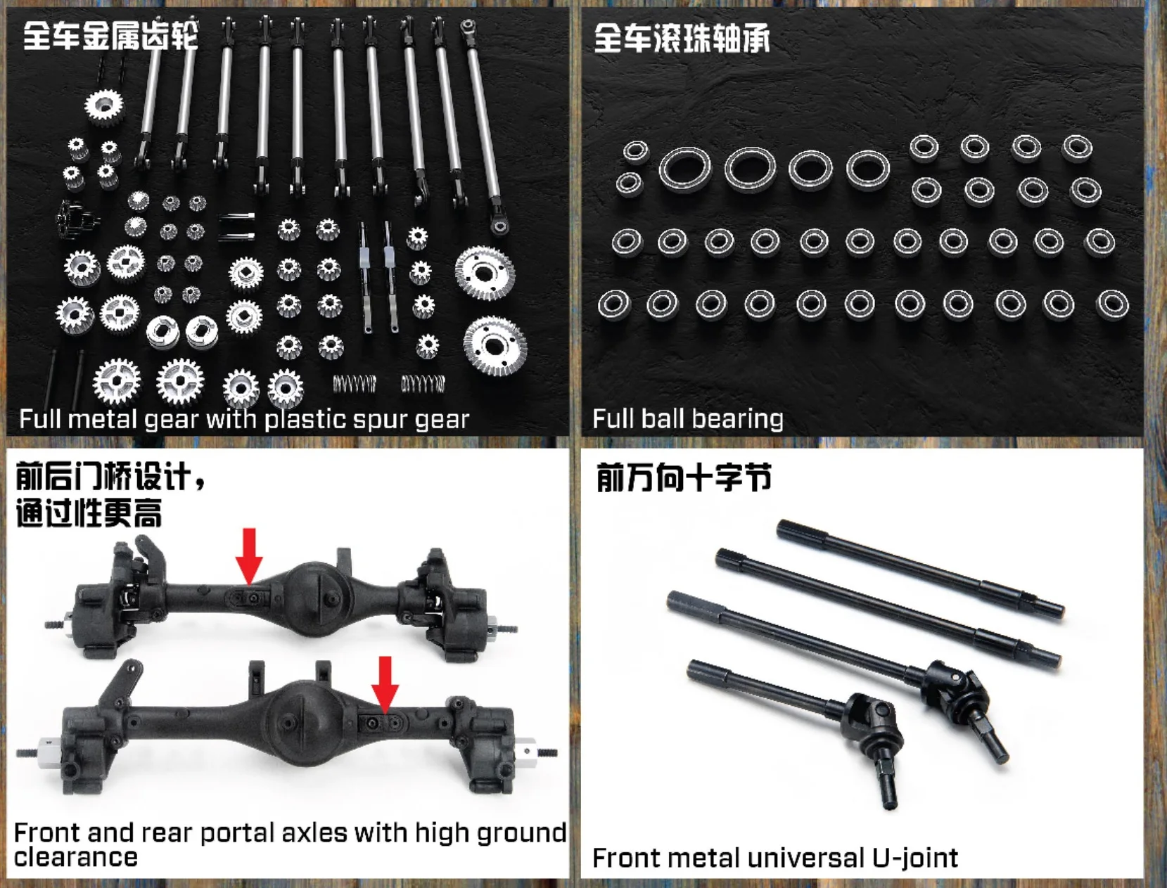 Equipped with Full metal ball bearing system throughout the vehicle for smoother operation All-metal drivetrain, including gears and steering links, for maximum durability.