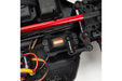 There are very few extreme off-road bashers that try to look realistic, so it’s always appreciated when one does. The Mojave body pulls off the desert truck appearance pretty well, with tons of scale decals and scale details to enhance that appearance, like that hard plastic front tube bumper that pokes through the inside, but it’s only attached to the body. Below the tube bumper sits the actual bumper, half-hidden behind the body, and the remaining piece sitting below. It’s actually a flexible rubber piece, so it maintains the bumper look while being flexible to not dig into the surface.