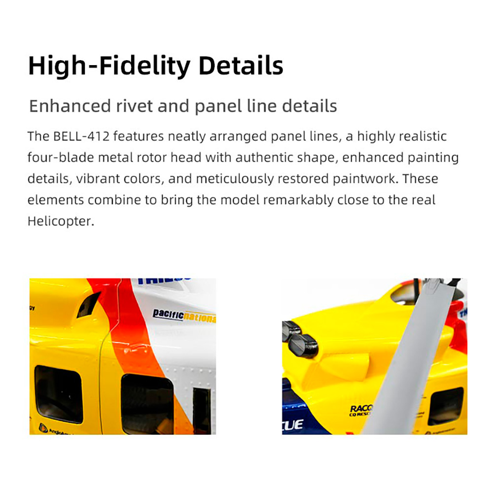 All in all, the scale FLYWING Bell-412 ACE is a versatile masterpiece suitable for everyone from beginners to experts. Whether you are looking for a stable training platform with professional ATT assistance or a beautiful scale model to admire, the Bell-412 delivers an unmatched experience. Order yours today and own a piece of aviation history.