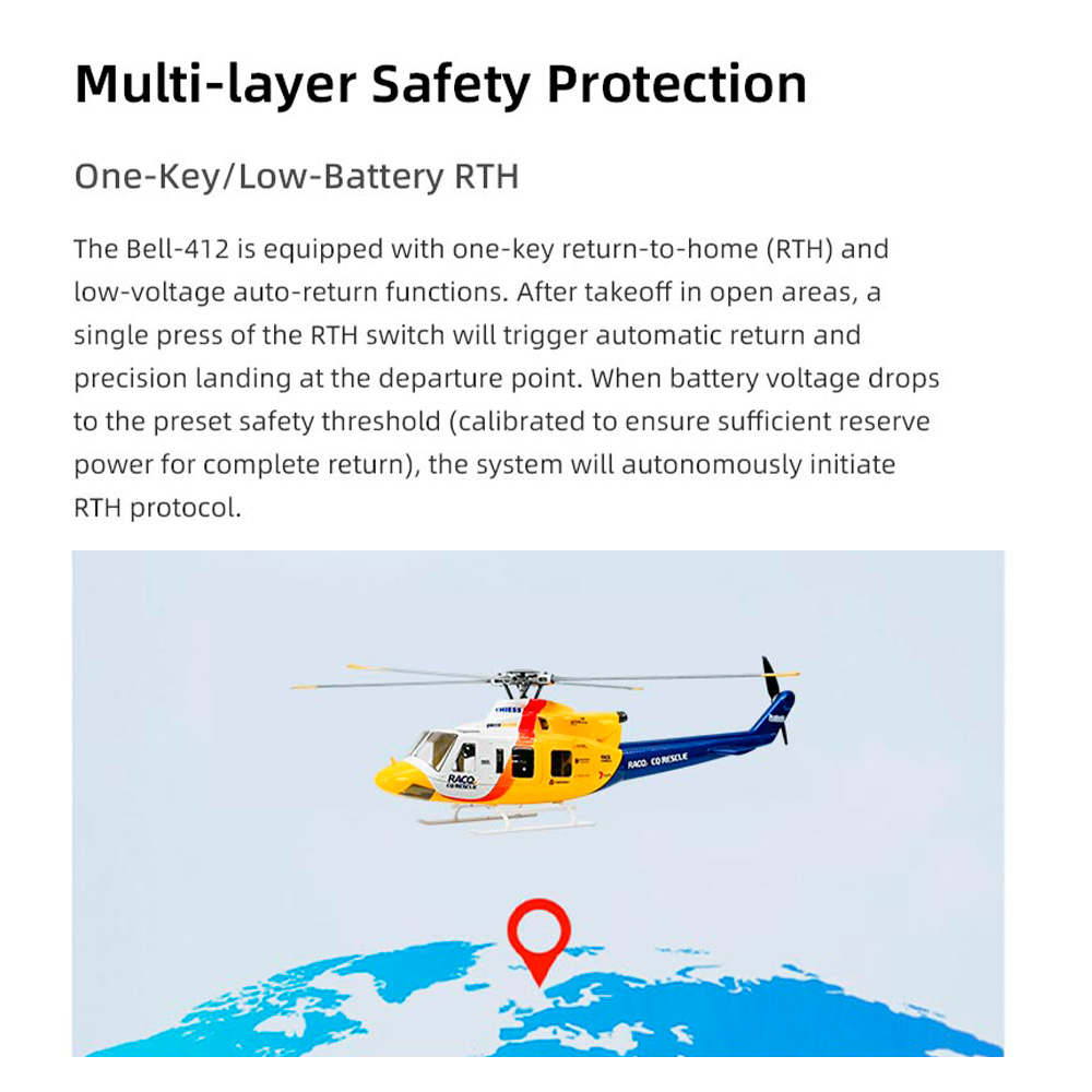 • Realistic Bell-412 scale body with ACE Flight Controller and GPS/GLONASS/Beidou positioning