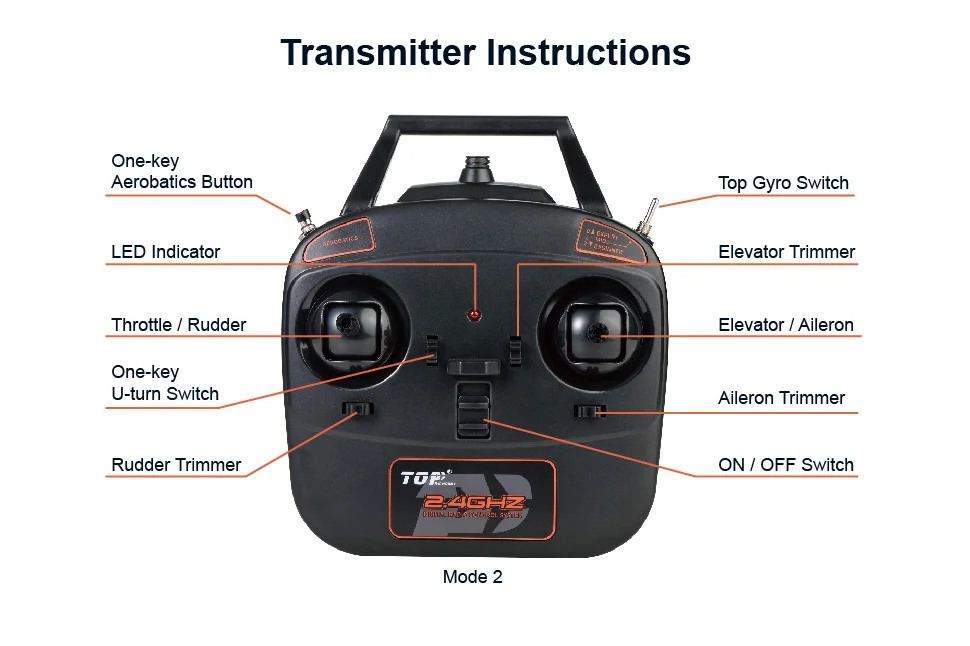 - Remote Control Transmitter (Mode 1 – Right hand Throttle)