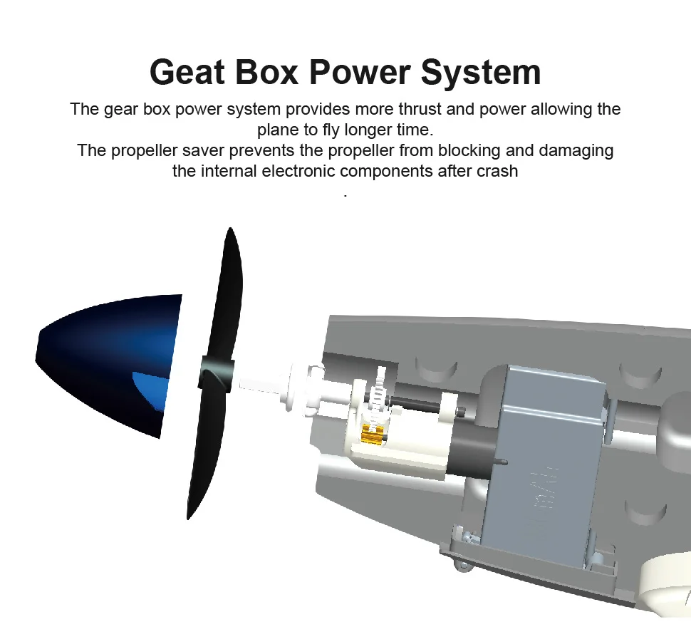 ESC: 4 in 1 (ESC + Servo + gyro + receiver)Servo: 1.3g x 2, 2g x 1Rudder, Elevator, Aileron, Throttle
