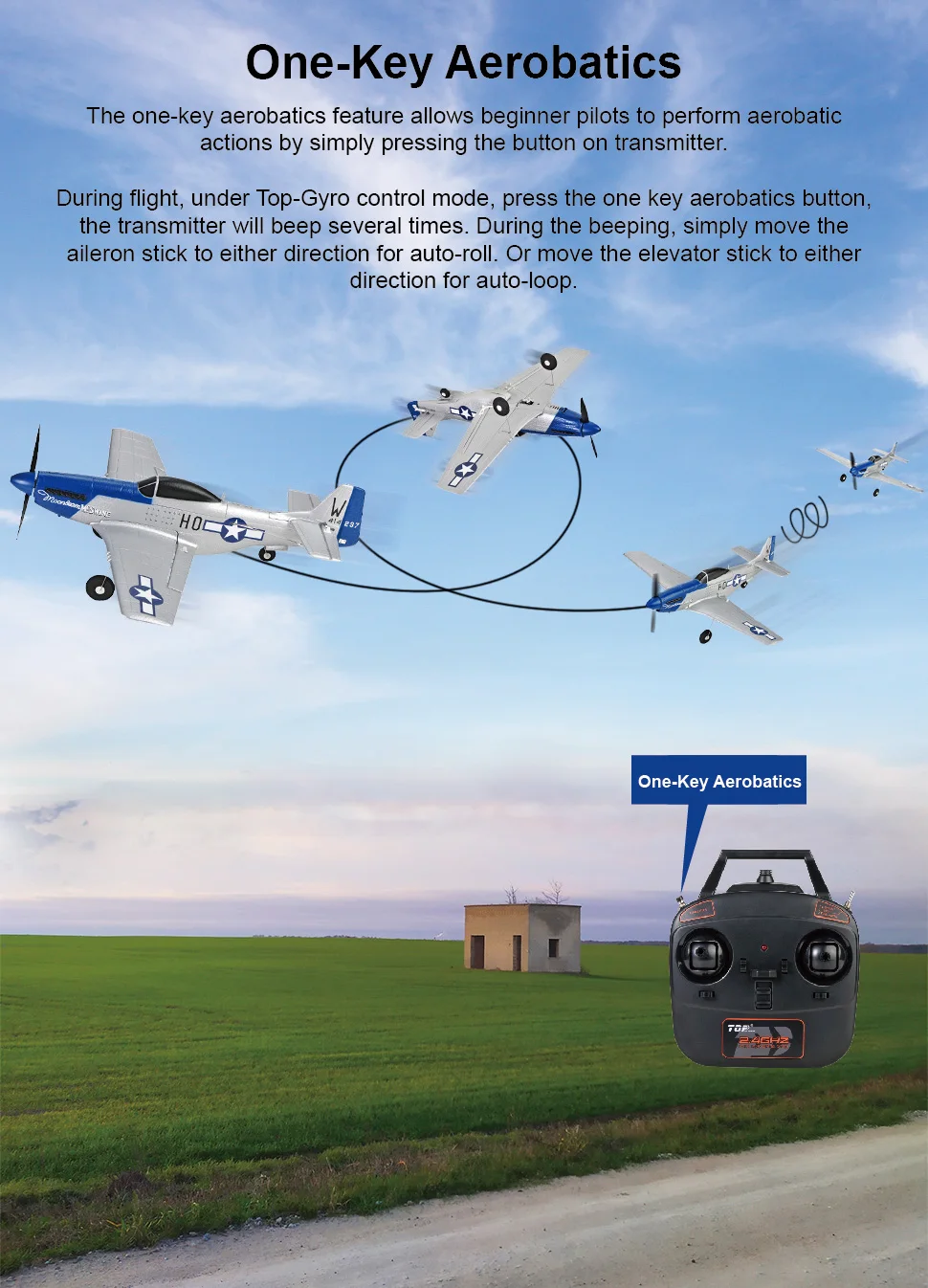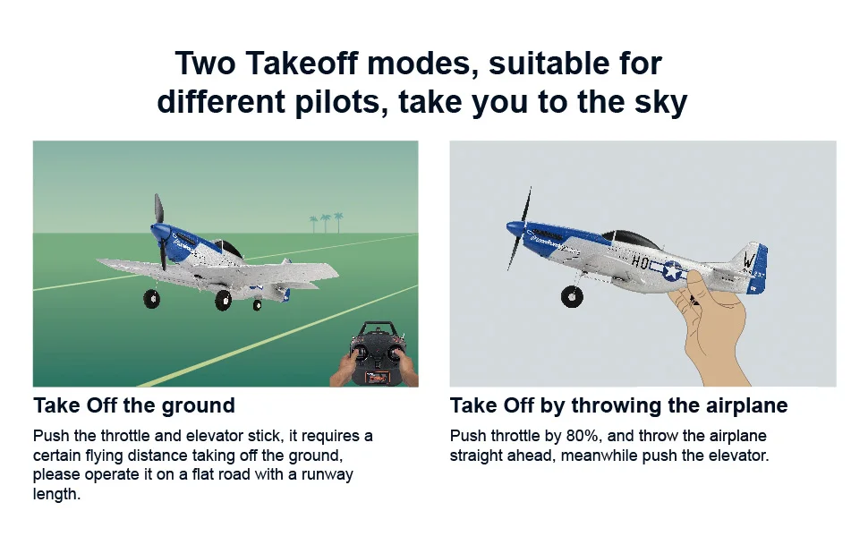 P51 MUSTANG RTF ready to fly few minutes after charging the plane battery.
